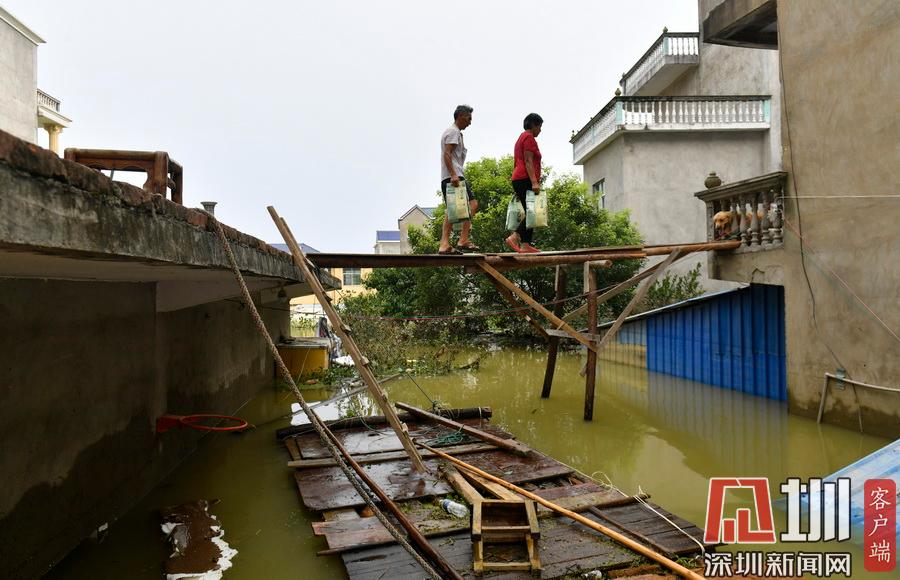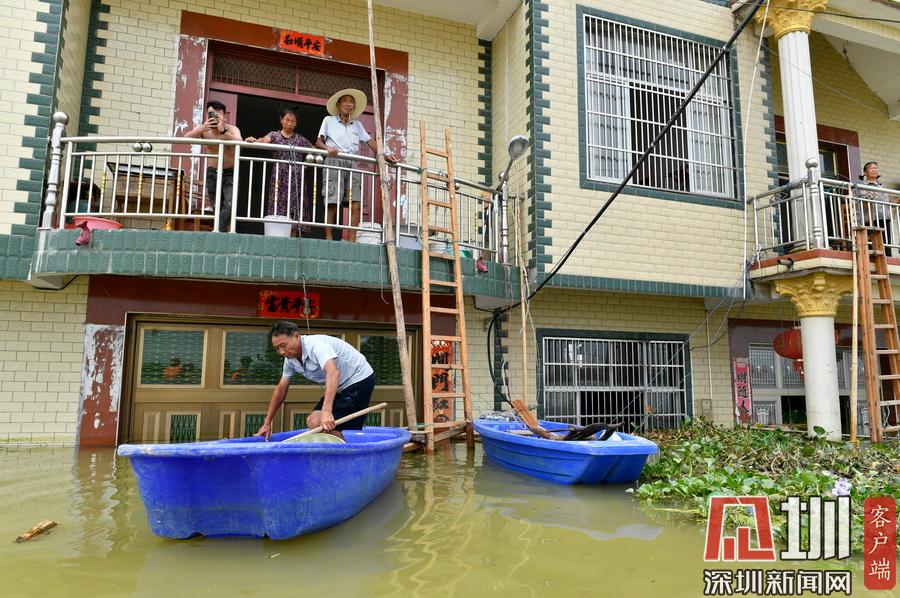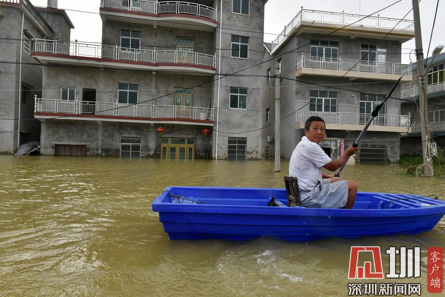 2020年7月15日,江西省鄱陽(yáng)縣油墩街鎮(zhèn)同興村,村莊受到洪水圍困,大部分村民已經(jīng)被轉(zhuǎn)移出去,仍有少數(shù)村民選擇留守家中積極自救繼續(xù)生活。7月8日晚,鄱陽(yáng)縣油墩街鎮(zhèn)西江因特大暴雨出現(xiàn)漫堤決口,5個(gè)行政村被洪水圍困,數(shù)萬(wàn)名群眾被及時(shí)疏散轉(zhuǎn)移。同興村村民張瑤康回憶起了當(dāng)時(shí)的場(chǎng)景,“水一下子就涌進(jìn)來(lái),等緩過(guò)神來(lái)趕緊向二樓轉(zhuǎn)移一樓的物品。洪水來(lái)時(shí)只從一樓搶到了一些輕便易拿的東西,冰箱、洗衣機(jī)之類(lèi)的大物件,至今仍浸泡在一樓水中?!?5日,記者跟隨張瑤康乘船回家,抵達(dá)后看到,一樓淹沒(méi)在水中,一個(gè)綁在二樓護(hù)欄的木梯成為進(jìn)出“家門(mén)”的唯一通道?!懊刻靹澊ゴ謇镞\(yùn)送水和食物,家里有煤氣罐和灶臺(tái)。因?yàn)?0多歲的老母親行動(dòng)不便,我們選擇留守家中?!薄半m然對(duì)岸就有安置點(diǎn),但還是更愿待在自己家里,一來(lái)是不愿意給政府添麻煩,二來(lái)能每天看著自己的房子心里踏實(shí)?!蓖d村村民張長(zhǎng)來(lái)夫婦帶著剛剛領(lǐng)到的大米、方便面、飲用水乘船回到家中。記者在現(xiàn)場(chǎng)看到,隨著各方救援力量和物資的匯聚,被洪水圍困的村民生活雖有不便,但生活仍在繼續(xù)?!胺孔硬坏?,家就在,我們要積極面對(duì),早日重建家園?!睆埇幙蹈嬖V記者。
