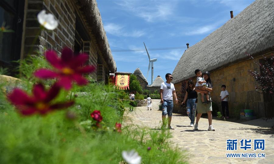 7月17日,游客在以傳統(tǒng)海草民居聞名的山東榮成東楮島村觀光。近年來,山東省榮成市重點(diǎn)發(fā)展特色海洋旅游產(chǎn)業(yè),打造眾多國家級(jí)海洋牧場(chǎng),保留修復(fù)傳統(tǒng)海草民居,吸引游客前來觀光體驗(yàn)。如今特色海洋旅游已逐漸成為榮成經(jīng)濟(jì)發(fā)展新的增長點(diǎn)。新華社記者王凱攝