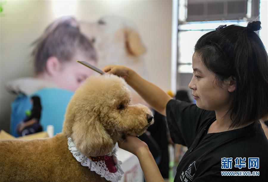 7月19日,在成都世紀(jì)城新國(guó)際會(huì)展中心,一家寵物美容學(xué)校的工作人員演示給寵物犬梳毛。當(dāng)日,第九屆成都國(guó)際寵博會(huì)進(jìn)入最后一天。此次展會(huì)展出面積30000平方米,匯聚國(guó)內(nèi)外品牌企業(yè)和產(chǎn)品,覆蓋中西部地區(qū)寵物行業(yè)食品、用品、醫(yī)療和服務(wù)等領(lǐng)域。新華社記者王曦?cái)z
