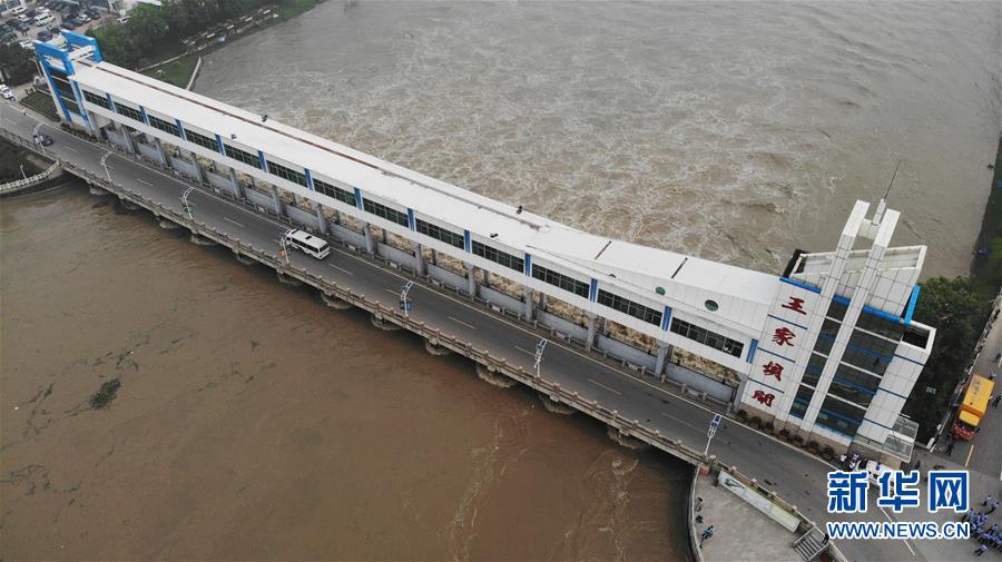 7月20日,洪水通過王家壩閘涌入蒙洼蓄洪區(qū)(無人機照片)。當日8時32分,淮河干流王家壩閘開閘泄洪。受近期強降雨影響,淮河干流王家壩站水位19日快速上漲,7月20日6時36分水位漲至29.66米,超過保證水位0.36米?;春油跫覊伍l開閘泄洪,蒙洼蓄洪區(qū)啟用。新華社記者黃博涵攝