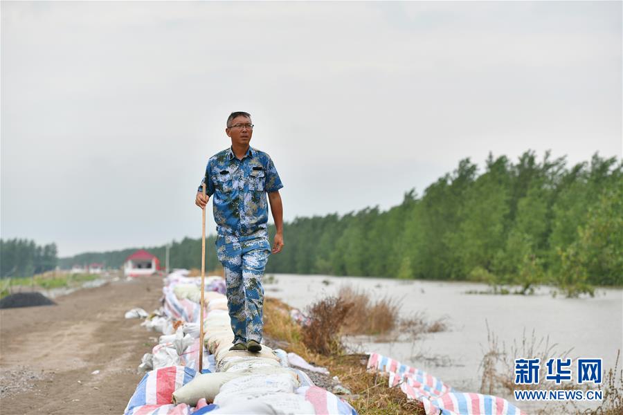 劉良武在江洲鎮(zhèn)的長(zhǎng)江堤壩上巡查(7月19日攝)。新華社記者周密攝