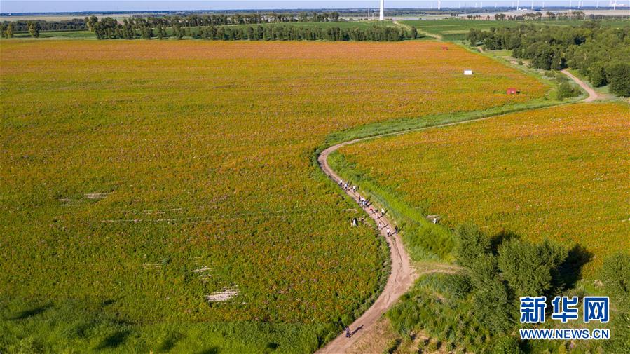 這是查干湖花海景區(qū)(7月20日攝,無人機照片)。新華社記者張楠攝