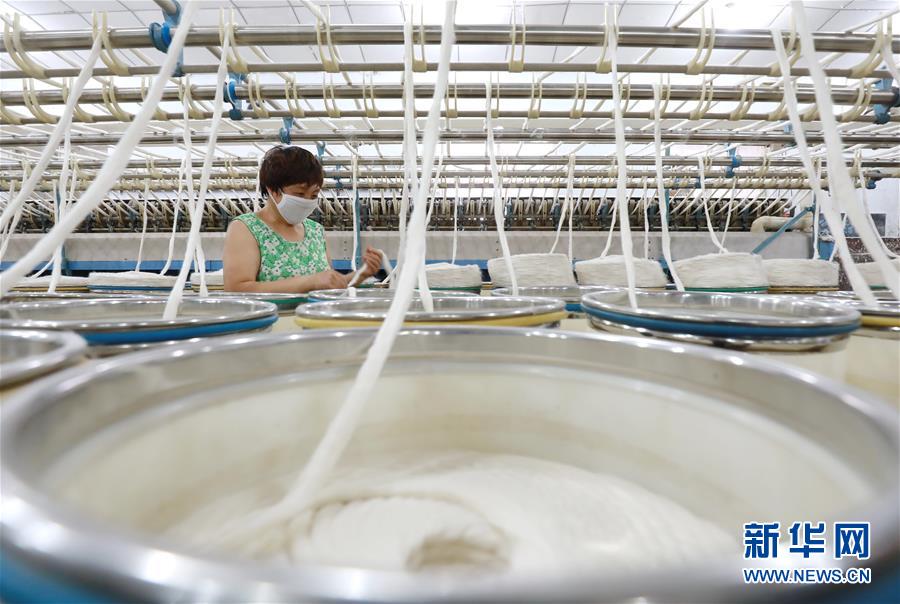 7月20日,工人在灤南縣長(zhǎng)凝鎮(zhèn)的一家紡織廠生產(chǎn)車間里工作。近年來(lái),河北省灤南縣大力發(fā)展村邊民營(yíng)企業(yè),引導(dǎo)企業(yè)在鄉(xiāng)鎮(zhèn)村邊建廠,帶動(dòng)當(dāng)?shù)?萬(wàn)多名農(nóng)村群眾在村邊就近就業(yè),實(shí)現(xiàn)穩(wěn)步增收。新華社記者楊世堯攝