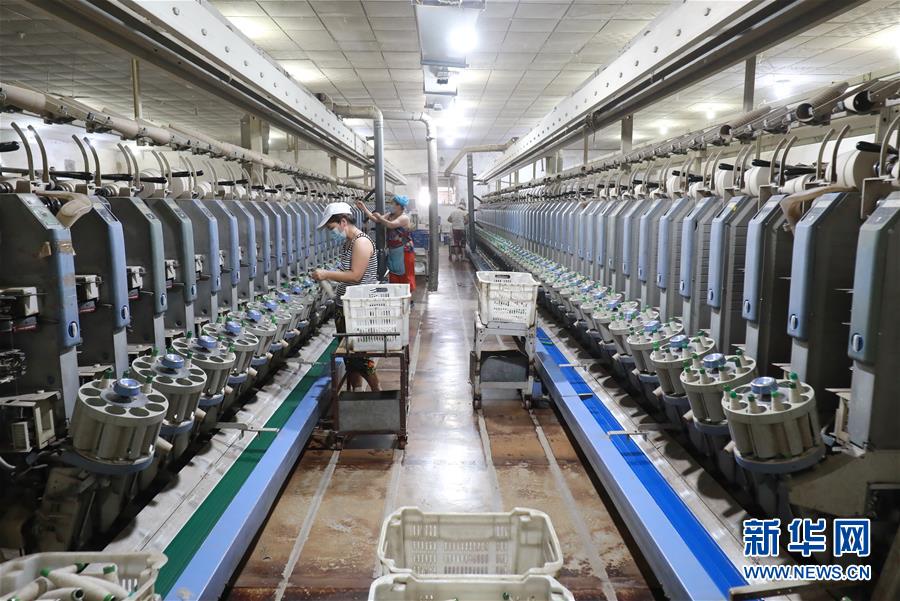 7月20日,工人在灤南縣長(zhǎng)凝鎮(zhèn)的一家紡織廠(chǎng)生產(chǎn)車(chē)間里工作。近年來(lái),河北省灤南縣大力發(fā)展村邊民營(yíng)企業(yè),引導(dǎo)企業(yè)在鄉(xiāng)鎮(zhèn)村邊建廠(chǎng),帶動(dòng)當(dāng)?shù)?萬(wàn)多名農(nóng)村群眾在村邊就近就業(yè),實(shí)現(xiàn)穩(wěn)步增收。新華社記者楊世堯攝