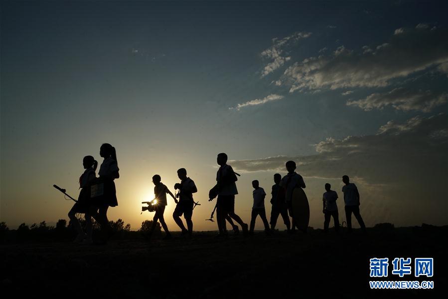 2019年8月15日,《向陽而生》攝制組完成一天的拍攝,行走在返回學校的途中。新華社記者牟宇攝