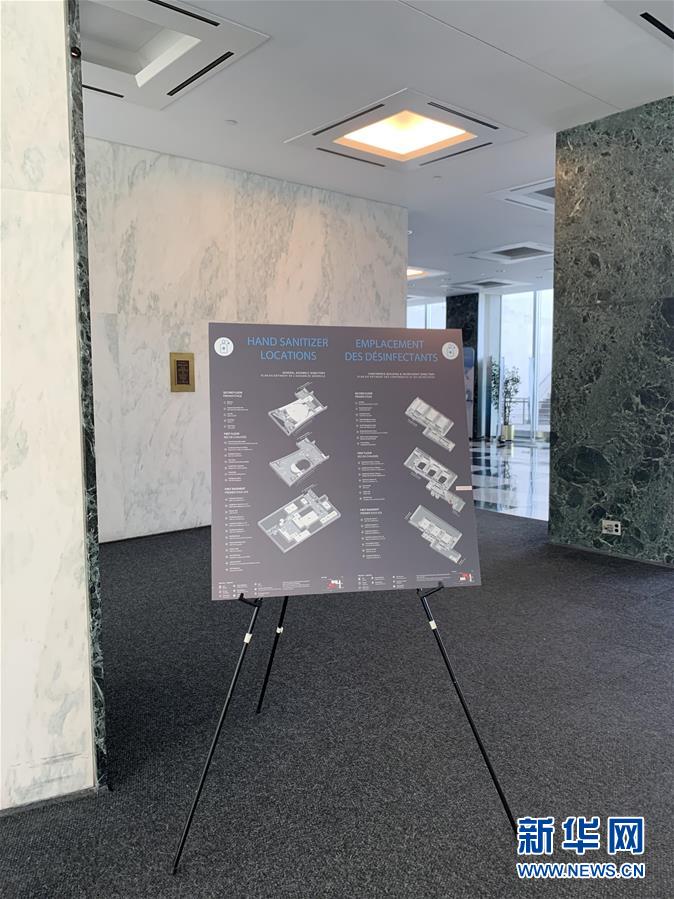 7月20日,在位于紐約的聯(lián)合國(guó)總部,秘書(shū)處大樓入口附近豎立著一塊標(biāo)明消毒液擺放點(diǎn)的指示牌。受新冠疫情影響而實(shí)行遠(yuǎn)程辦公4個(gè)多月的紐約聯(lián)合國(guó)總部20日進(jìn)入重啟第一階段。按規(guī)定,該階段每天進(jìn)入總部大樓人數(shù)不能超過(guò)400人。新華社記者王建剛攝