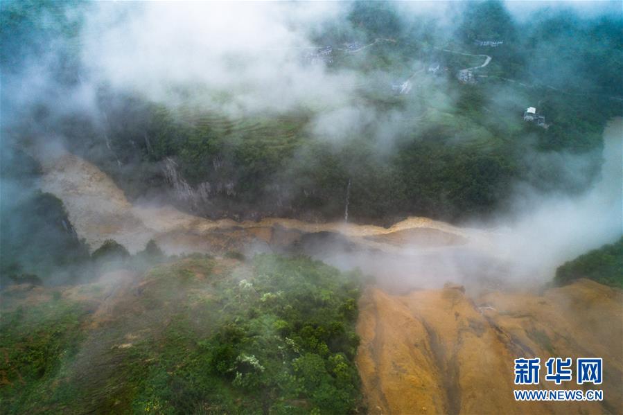 7月21日拍攝的因恩施州屯堡鄉(xiāng)馬者村山體滑坡形成的堰塞湖(無(wú)人機(jī)照片)。當(dāng)日,湖北恩施土家族苗族自治州屯堡鄉(xiāng)馬者村沙子壩滑坡體出現(xiàn)大面積滑移,形成堰塞湖,上游水位已上漲5米左右。目前,相關(guān)部門和鄉(xiāng)鎮(zhèn)正在組織形成堰塞湖后可能受影響區(qū)域的群眾轉(zhuǎn)移和交通管控工作。大龍?zhí)端畮?kù)正在加快騰庫(kù),最大限度保證廣大群眾生命財(cái)產(chǎn)安全。新華社記者肖藝九攝