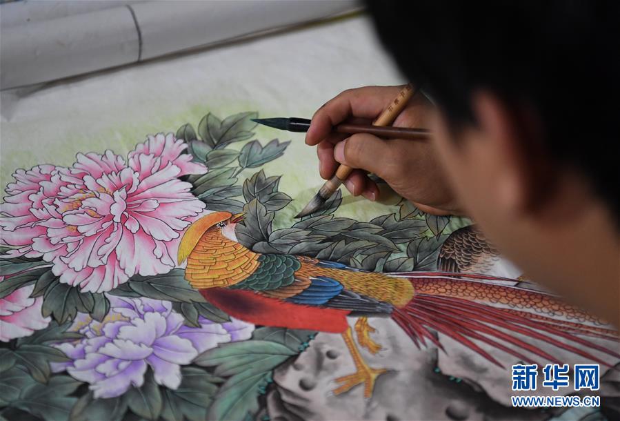 7月22日,王紅彬在家中創(chuàng)作工筆畫。新華社記者朱旭東攝
