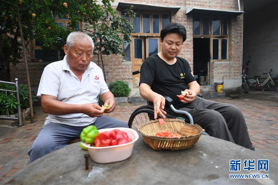 7月22日,王紅彬(右)和父親在自家院里擇菜。新華社記者朱旭東攝