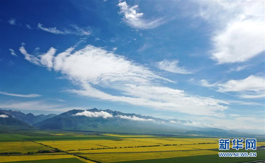 這是7月22日拍攝的門源回族自治縣境內(nèi)的油菜花田(無人機(jī)照片)。新華社記者 吳剛 攝