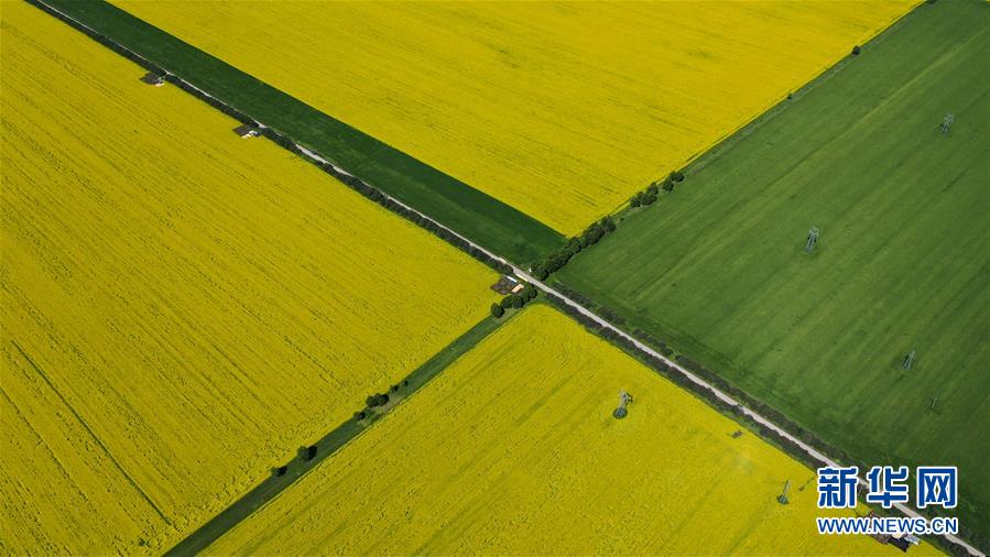 這是7月23日拍攝的門源回族自治縣的油菜花田(無人機(jī)照片)。新華社記者 吳剛 攝