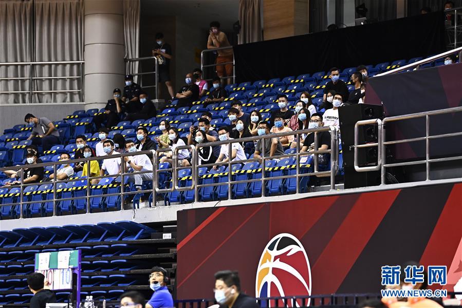 7月26日,觀眾觀看上海久事隊與山東西王隊的比賽。該場比賽首次恢復觀眾現(xiàn)場觀看比賽。當日,在山東青島舉行的2019-2020賽季中國男子籃球職業(yè)聯(lián)賽(CBA)復賽第二階段(嶗山賽區(qū))比賽中,醫(yī)護人員、教師、公安戰(zhàn)線人士通過官方購票平臺,完成包括核酸檢測在內(nèi)的相關流程后進場觀看了上海久事隊迎戰(zhàn)山東西王隊的比賽。觀賽期間,觀賽者須全程佩戴口罩,對號入座,嚴格保持間隔一米就座。退場時,觀眾須按照自后向前、先兩邊后中間的順序,保持“一米線”社交距離有序退場。新華社記者 郭緒雷 攝