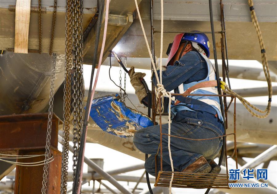 7月27日,工人在拉薩貢嘎國際機場T3航站樓的工地上作業(yè)。新華社記者 田金文 攝