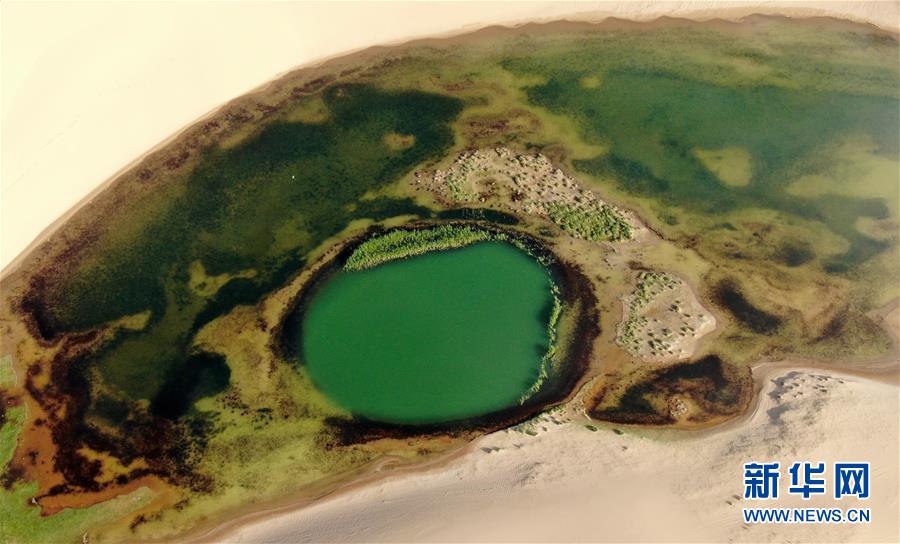 這是青海湖沙島風光(7月28日攝,無人機照片)。盛夏傍晚,位于青海湖東北部的沙島,島內(nèi)湖泊星羅棋布,沙丘連綿起伏,風景別致。金沙與湖水掩映,在陽光的勾勒下形成一幅美麗的畫卷。新華社記者張宏祥攝