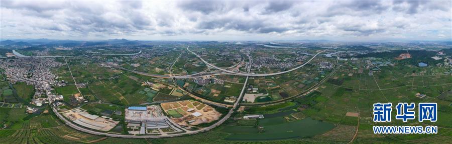 這是已經(jīng)建設(shè)完成的潮汕環(huán)線高速公路上北互通立交(無人機照片,7月31日攝)。新華社記者劉大偉攝