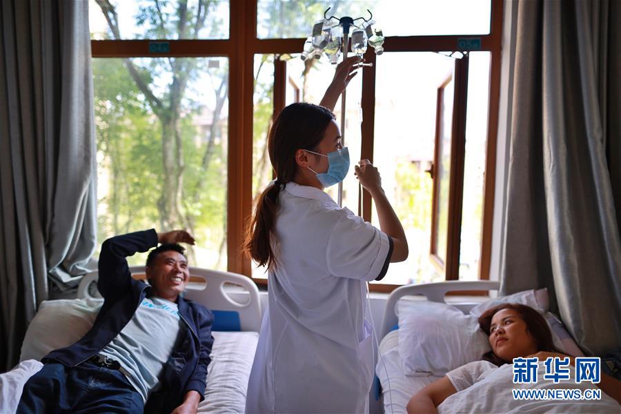 搬遷群眾在柏楊林易地扶貧搬遷安置點(diǎn)衛(wèi)生院內(nèi)治療(8月3日攝)。貴州省畢節(jié)市七星關(guān)區(qū)柏楊林易地扶貧搬遷安置點(diǎn)是畢節(jié)市最大的易地扶貧搬遷安置點(diǎn),總面積約1.1平方公里,從2017年開(kāi)始至今,共有34個(gè)鄉(xiāng)鎮(zhèn)6372戶29001人安置到位。如今,安置點(diǎn)內(nèi)教育、醫(yī)療、就業(yè)扶貧車間、長(zhǎng)幼日間托養(yǎng)照料中心等設(shè)施齊全,搬遷群眾在這里過(guò)上了安居樂(lè)業(yè)的幸福生活。新華社記者劉續(xù)攝