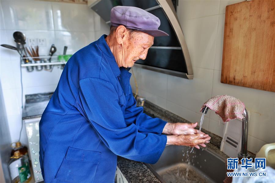 石連英在柏楊林易地扶貧搬遷安置點(diǎn)家中洗手(8月3日攝)。貴州省畢節(jié)市七星關(guān)區(qū)柏楊林易地扶貧搬遷安置點(diǎn)是畢節(jié)市最大的易地扶貧搬遷安置點(diǎn),總面積約1.1平方公里,從2017年開(kāi)始至今,共有34個(gè)鄉(xiāng)鎮(zhèn)6372戶29001人安置到位。如今,安置點(diǎn)內(nèi)教育、醫(yī)療、就業(yè)扶貧車間、長(zhǎng)幼日間托養(yǎng)照料中心等設(shè)施齊全,搬遷群眾在這里過(guò)上了安居樂(lè)業(yè)的幸福生活。新華社記者劉續(xù)攝