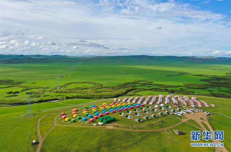 這是呼倫貝爾陳巴爾虎旗天下草原游牧部落一景(8月3日攝,無(wú)人機(jī)照片)。今年暑期,內(nèi)蒙古呼倫貝爾通過暫行周末2.5天彈性休假工作制度,發(fā)放旅游、餐飲消費(fèi)券,景區(qū)推出優(yōu)惠促銷活動(dòng)等措施,提振當(dāng)?shù)芈糜问袌?chǎng)。新華社記者徐欽攝