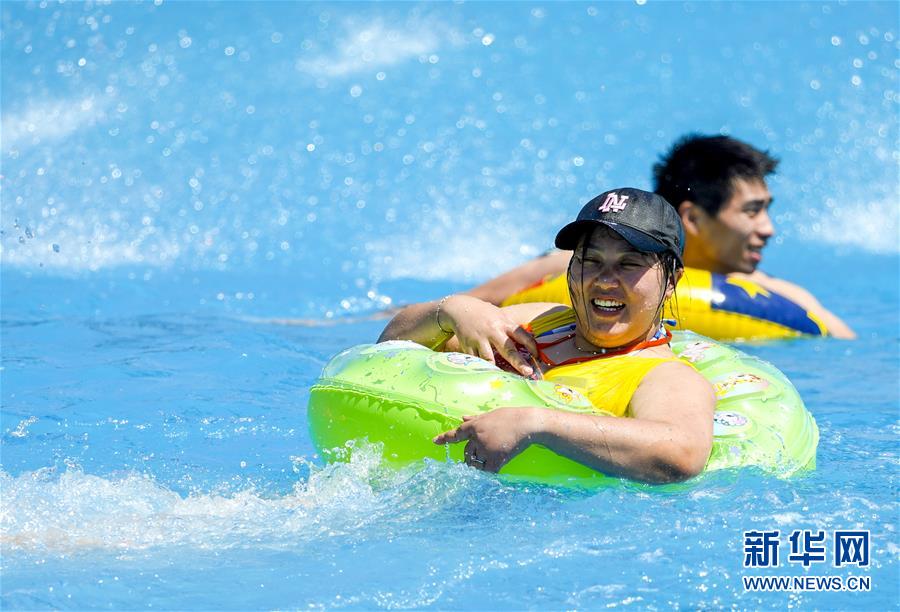 8月5日,重慶涪陵紅酒小鎮(zhèn)水上樂園內(nèi),市民在水中嬉戲。當(dāng)日,重慶市氣象臺再次發(fā)布“高溫橙色預(yù)警信號”,重慶大部分海拔400米以下地區(qū)日最高氣溫將升至37℃以上,局地可達40℃以上。許多重慶市民涌進當(dāng)?shù)氐乃蠘穲@和泳池,在水中享受夏季的清涼。新華社記者劉潺攝