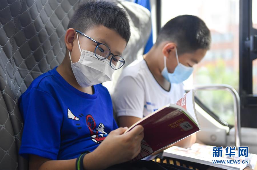 8月5日,小讀者在“流動圖書館”里看書。三千冊圖書,一輛大巴車,穿梭在城市的街頭巷尾。在吉林長春,長春市圖書館利用流動圖書車,定期在市內(nèi)15個固定服務(wù)點(diǎn)間巡回流動,為市民提供便捷的圖書借閱服務(wù)。新華社記者許暢攝