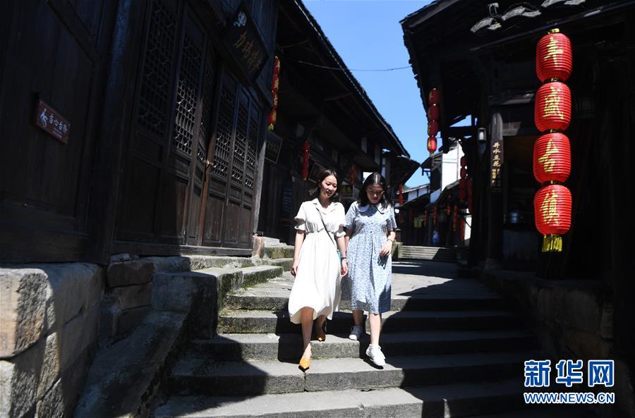 8月5日,游客在豐盛古鎮(zhèn)游覽。近年來,重慶市巴南區(qū)引入社會資本,按照“修舊如舊、適度開發(fā)”的原則對豐盛古鎮(zhèn)進(jìn)行保護(hù)性修繕和景區(qū)化打造,讓古鎮(zhèn)在保留原有歷史人文風(fēng)貌的同時,煥發(fā)新活力。新華社記者王全超攝