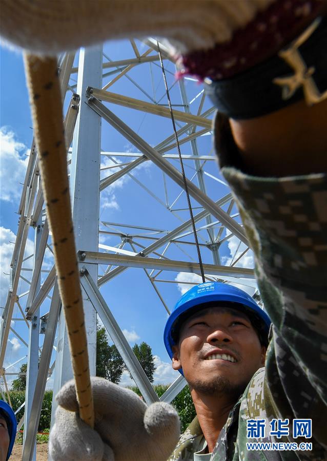 8月6日,送電工楊連才在吉林省長(zhǎng)春市城郊的一處輸電鐵塔下施工作業(yè)。吉林省長(zhǎng)春市連續(xù)多日出現(xiàn)高溫天氣,國網(wǎng)長(zhǎng)春供電公司輸電運(yùn)檢中心的送電工們每天清晨開始作業(yè),不畏烈日“烤”驗(yàn),堅(jiān)守工作崗位,確保工程按計(jì)劃完成。新華社記者張楠攝
