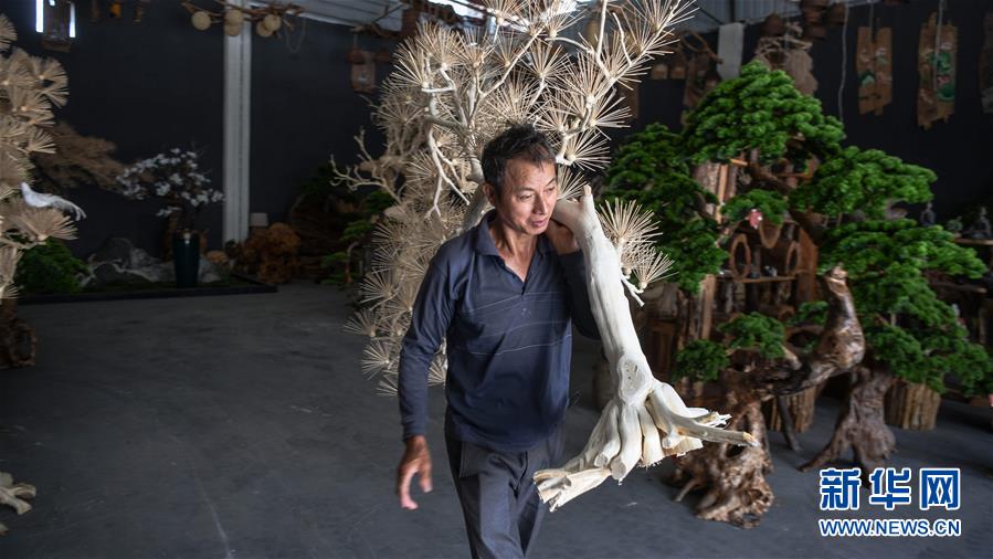 8月7日,一名工人在永??h永安鄉(xiāng)根雕工藝品就業(yè)扶貧車間搬運(yùn)根雕半成品。2017年以來,廣西桂林市永福縣永安鄉(xiāng)通過幫扶返鄉(xiāng)青年創(chuàng)業(yè)的方式,建立起根雕工藝品就業(yè)扶貧車間,組織貧困群眾進(jìn)車間務(wù)工學(xué)藝,把當(dāng)?shù)刎S富的朽木和柑橘樹根枝資源利用起來,加工成盆景、茶桌、吊燈等根雕工藝品,不僅幫助貧困群眾在家門口掌握一技之長,還讓他們在脫貧摘帽后實現(xiàn)穩(wěn)定增收。新華社記者張愛林?jǐn)z