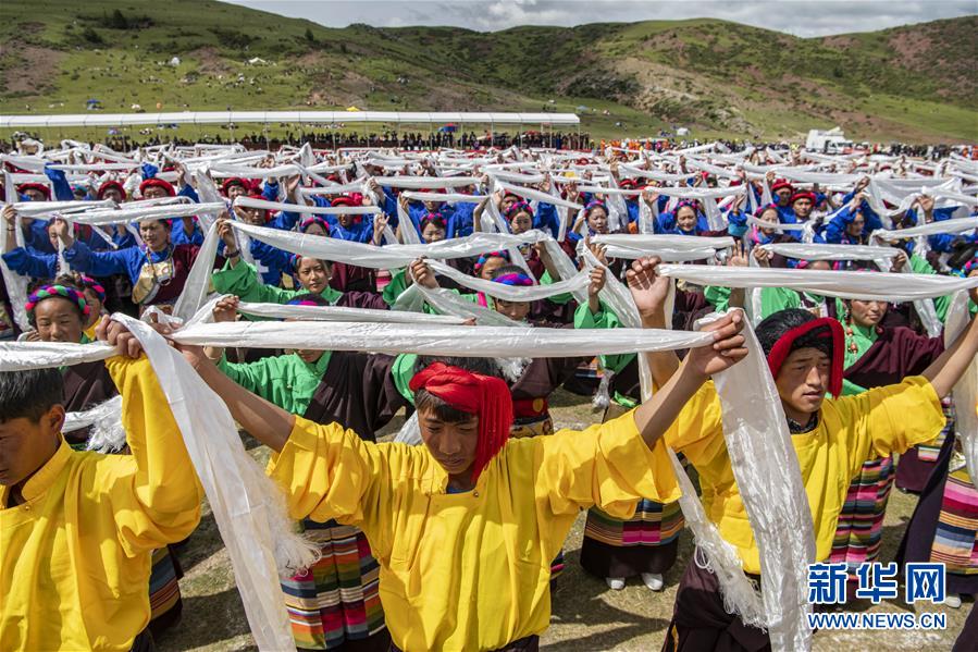 8月7日,在西藏首屆弦子舞展演現(xiàn)場,演出人員在表演舞蹈《弦鼓情緣》。當(dāng)日,西藏首屆弦子舞展演在昌都市芒康縣舉行。眾多演員同臺(tái)獻(xiàn)藝,表演國家級(jí)非物質(zhì)文化遺產(chǎn)弦子舞,吸引西藏各地的群眾前來觀看。新華社記者孫非攝