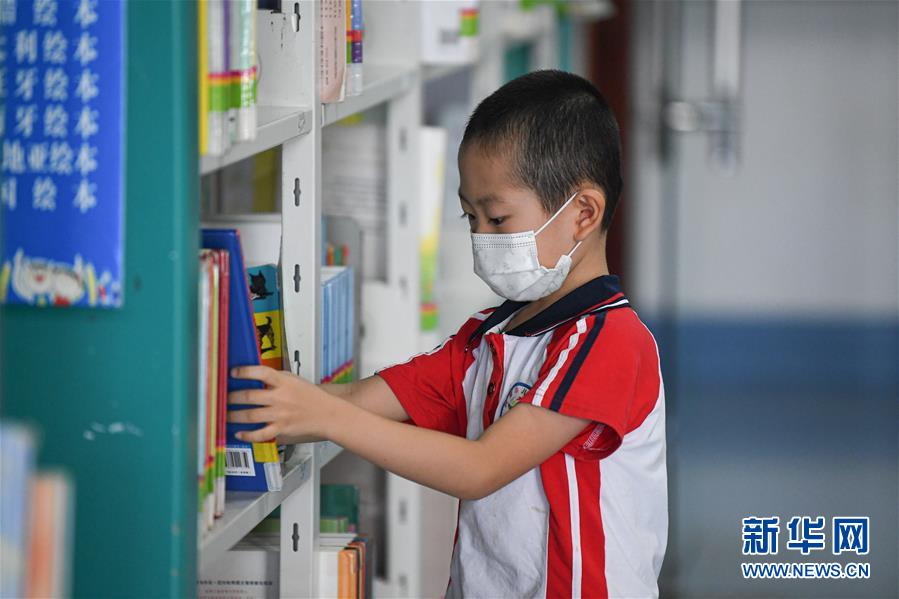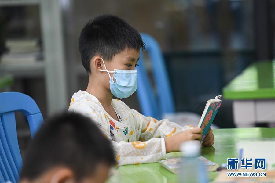 8月8日,小朋友在位于??诘暮D鲜D書(shū)館閱讀書(shū)籍。新華社記者 蒲曉旭 攝