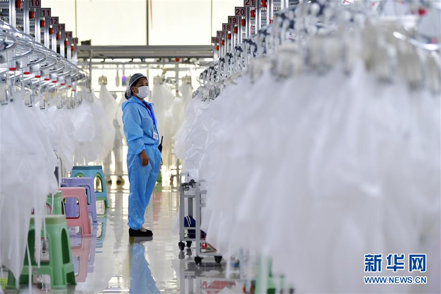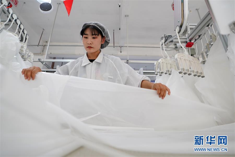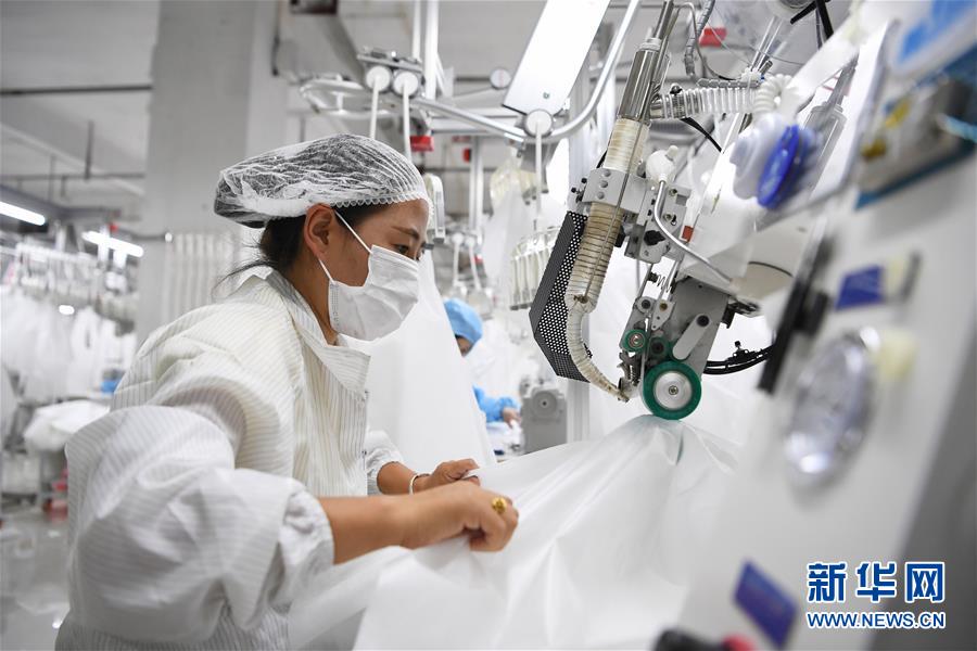 8月9日,甘肅拓奇扶貧車間的員工在服裝加工生產(chǎn)線上作業(yè)。甘肅拓奇扶貧車間位于甘肅省臨夏回族自治州積石山縣,是依托東西部扶貧協(xié)作平臺引進的服裝加工企業(yè)。扶貧車間建成投產(chǎn)以來帶動就業(yè)近300人,其中吸納建檔立卡貧困戶就業(yè)110人,實現(xiàn)了貧困群眾就地就近就業(yè)增收的目的,為助推當(dāng)?shù)孛撠毠约翱h域經(jīng)濟發(fā)展發(fā)揮了重要作用。新華社記者邢廣利攝。