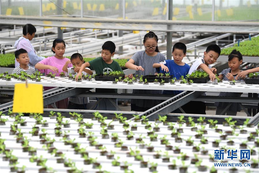 8月9日,在花崗鎮(zhèn)現(xiàn)代農(nóng)業(yè)示范區(qū)一家蔬菜種植企業(yè)內(nèi),小朋友在體驗(yàn)移栽蔬菜幼苗。當(dāng)日,安徽省肥西縣花崗鎮(zhèn)開展暑期“親近自然體驗(yàn)田園”活動,邀請轄區(qū)兒童參觀花崗鎮(zhèn)現(xiàn)代農(nóng)業(yè)示范區(qū),感受現(xiàn)代農(nóng)業(yè)的魅力。新華社記者劉軍喜攝。