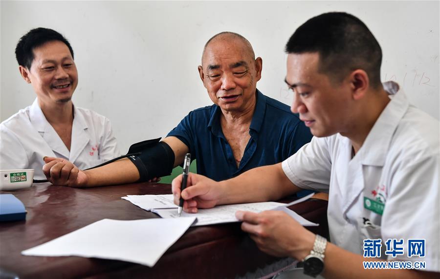 陜西安康市嵐皋縣佐龍鎮(zhèn)中心衛(wèi)生院的醫(yī)生在佐龍村對家庭醫(yī)生簽約服務(wù)對象進(jìn)行慢性病隨訪(7月30日攝)。目前,嵐皋縣組建了71個(gè)鎮(zhèn)級(jí)家庭醫(yī)生服務(wù)團(tuán)隊(duì)、15個(gè)縣級(jí)技術(shù)指導(dǎo)團(tuán)隊(duì),對貧困群眾開展重點(diǎn)人群免費(fèi)體檢、慢病隨訪、健康生活指導(dǎo)、健康扶貧政策宣傳等簽約服務(wù)項(xiàng)目。新華社記者劉瀟攝。