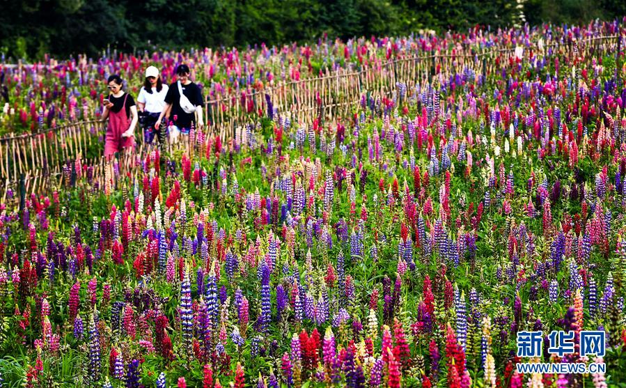 游客在陜西寶雞市太白縣咀頭鎮(zhèn)七里川村的魯冰花產(chǎn)業(yè)園內(nèi)觀光游覽(7月4日攝)。近年來,陜西地處秦巴山區(qū)的多個(gè)縣市結(jié)合當(dāng)?shù)刈匀粴夂驐l件打造特色花海景觀,利用“花海經(jīng)濟(jì)”助力脫貧攻堅(jiān)和鄉(xiāng)村振興。新華社記者劉瀟攝。