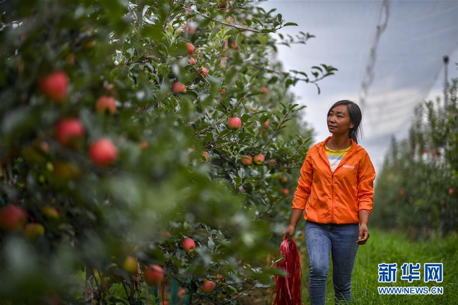 8月8日,昭通超越萬畝蘋果基地工人甄全米在蘋果園工作。近年來,云南省昭通市確立以蘋果產(chǎn)業(yè)為主導(dǎo)的現(xiàn)代農(nóng)業(yè)產(chǎn)業(yè)發(fā)展戰(zhàn)略。目前,該市蘋果種植面積近80萬畝,覆蓋全市20余個(gè)鄉(xiāng)鎮(zhèn),果農(nóng)種植蘋果年人均收入4000元以上,推動(dòng)30多萬果農(nóng)依托蘋果產(chǎn)業(yè)實(shí)現(xiàn)脫貧致富,半城蘋果滿城香的“蘋果之城”正在烏蒙山區(qū)奮力崛起。新華社記者江文耀攝。