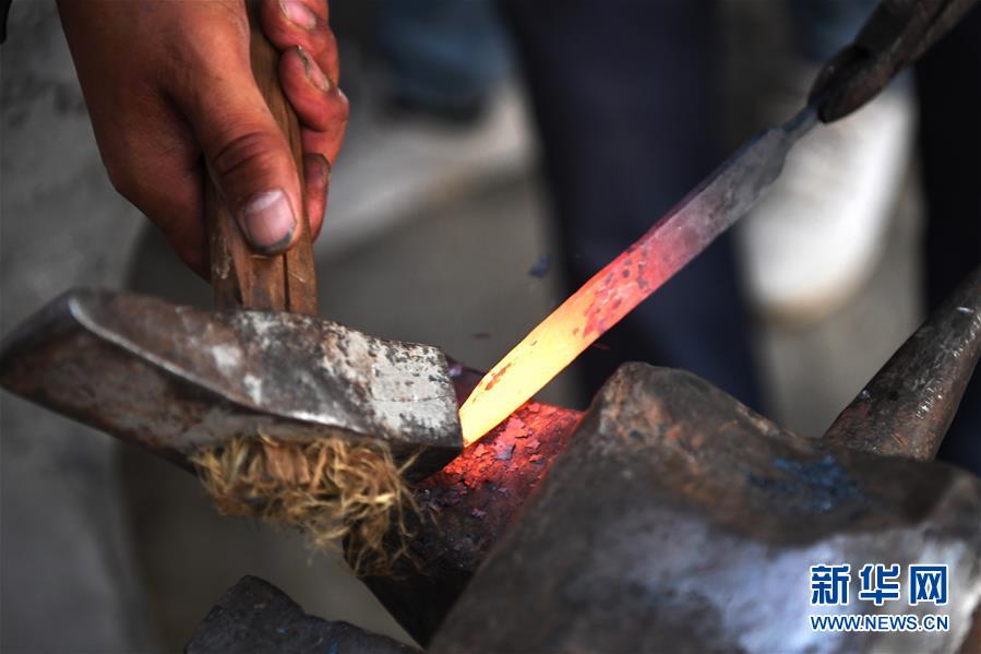 近年來,甘肅省臨夏回族自治州積石山縣通過建設保安腰刀鍛制技藝扶貧車間和工藝坊等形式,積極發(fā)展特色非遺經(jīng)濟,讓貧困群眾通過鍛制腰刀,傳承保護傳統(tǒng)技藝,拓寬收入渠道,助力脫貧致富。