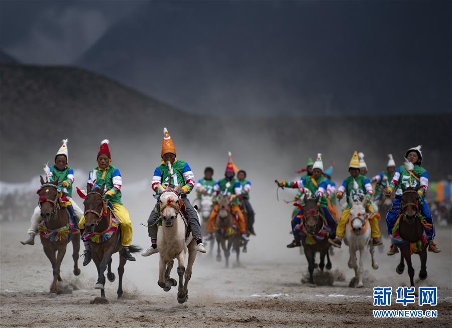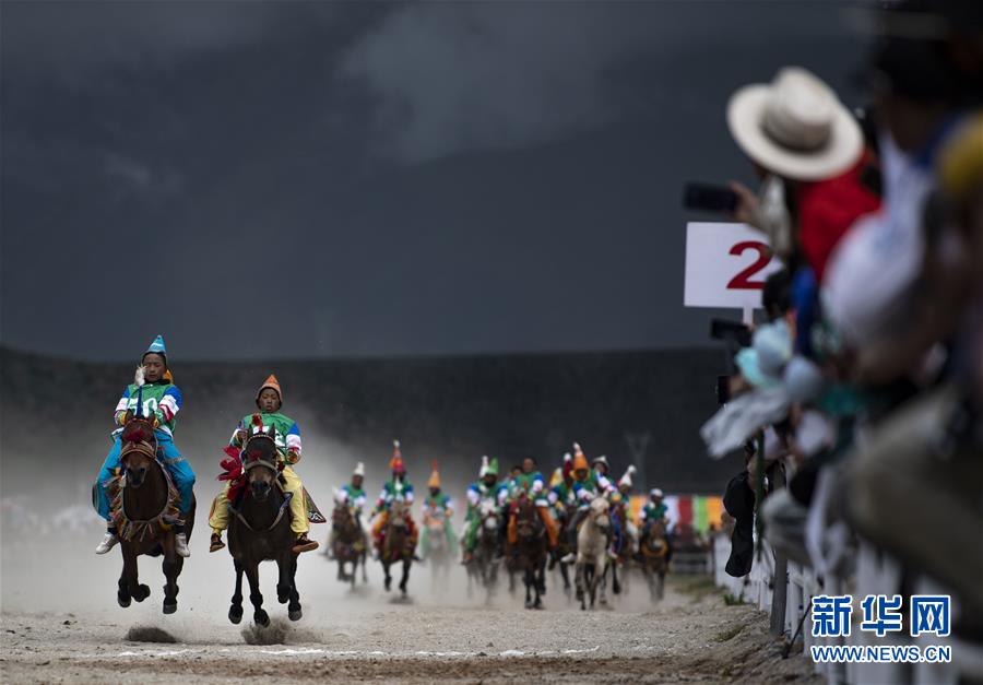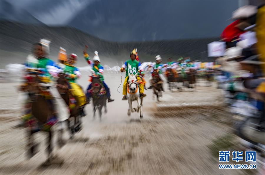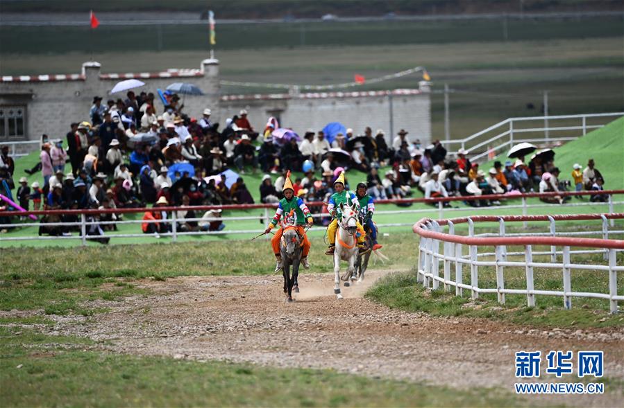 8月10日,騎手馳騁在當雄縣賽馬場。新華社記者晉美多吉攝。