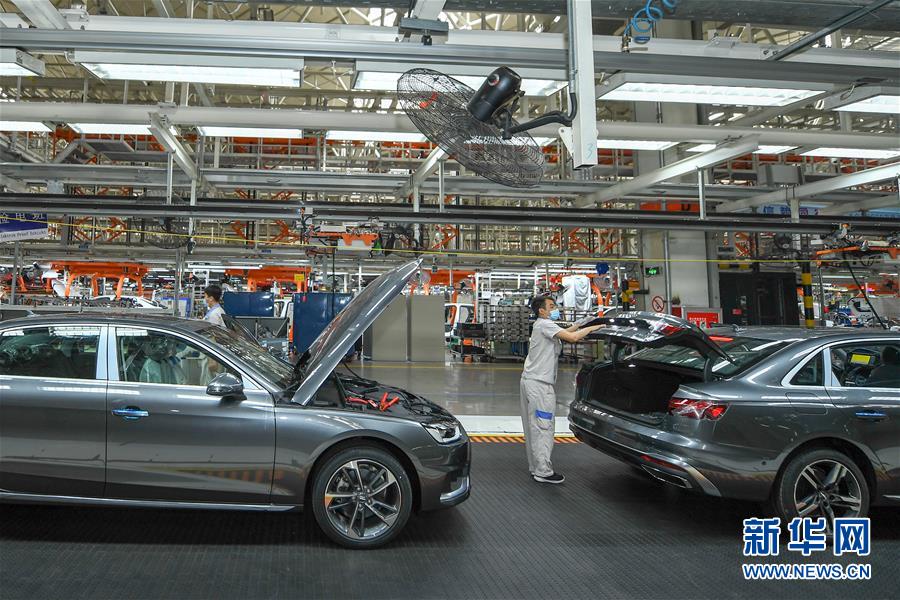 8月10日,在一汽-大眾長(zhǎng)春基地總裝車間,工人在裝配車輛。中國(guó)第一汽車集團(tuán)有限公司7月銷售整車32.2萬(wàn)輛,同比增長(zhǎng)23.2%,延續(xù)上半年的增長(zhǎng)態(tài)勢(shì)。新華社記者張楠攝。