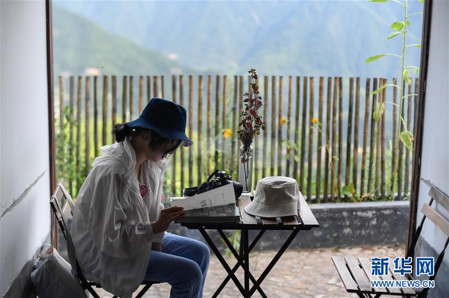 游客在浙江省麗水市松陽(yáng)縣四都鄉(xiāng)陳家鋪村的先鋒書店平民書局休閑(7月17日攝)。新華社記者黃宗治攝。