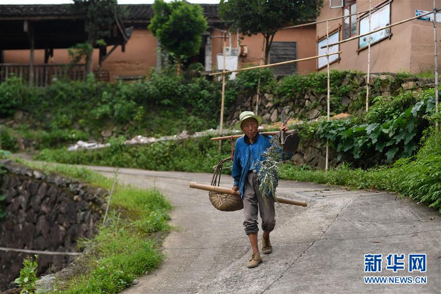 在浙江省麗水市松陽(yáng)縣三都鄉(xiāng)楊家堂村,村民在外勞作后回家(7月17日攝)。新華社記者黃宗治攝。