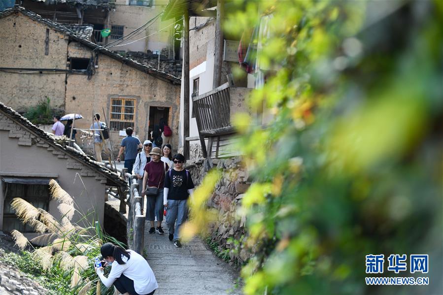 游客在浙江省麗水市松陽(yáng)縣三都鄉(xiāng)楊家堂村游覽(7月17日攝)。新華社記者黃宗治攝。