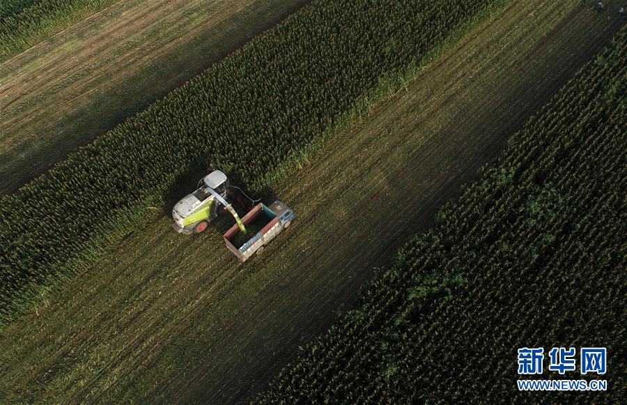 8月11日,灤南縣馬城鎮(zhèn)湛店子村的農(nóng)民使用大型機械收獲青貯玉米(無人機照片)。近日,河北省灤南縣的12萬畝青貯玉米陸續(xù)開始收獲,為當(dāng)?shù)啬膛pB(yǎng)殖提供新鮮優(yōu)質(zhì)飼料。作為河北省奶牛養(yǎng)殖大縣,灤南縣近年來大力推廣奶牛青貯玉米喂養(yǎng)模式,引導(dǎo)農(nóng)民種植青貯玉米,促進農(nóng)民增收。新華社記者楊世堯攝