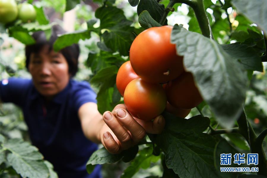 8月11日,在甘肅省臨夏回族自治州臨夏縣先鋒鄉(xiāng)前韓村,搬遷戶(hù)韓貴蘭在日光溫室內(nèi)采摘西紅柿。近年來(lái),甘肅省臨夏回族自治州臨夏縣把易地扶貧搬遷作為打贏脫貧攻堅(jiān)戰(zhàn)的重要任務(wù),科學(xué)推進(jìn)易地扶貧搬遷和脫貧攻堅(jiān)工作。為了讓搬遷群眾能夠安居樂(lè)業(yè),當(dāng)?shù)卣⒅胤龀趾罄m(xù)產(chǎn)業(yè)發(fā)展,引導(dǎo)搬遷群眾發(fā)展日光溫室、布鞋加工、觀光農(nóng)業(yè)、特色種養(yǎng)殖等產(chǎn)業(yè),幫助搬遷群眾實(shí)現(xiàn)就近就業(yè)、拓寬增收渠道,確保搬遷群眾“搬得出、穩(wěn)得住、有事做、能致富”。新華社記者陳斌攝