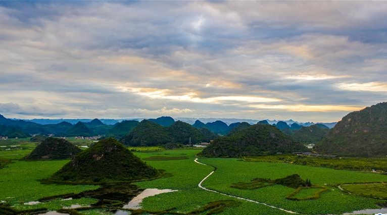 近日,云南省文山壯族苗族自治州丘北縣普者黑國家濕地公園山青水秀,風(fēng)景優(yōu)美,吸引眾多游人前來觀光。