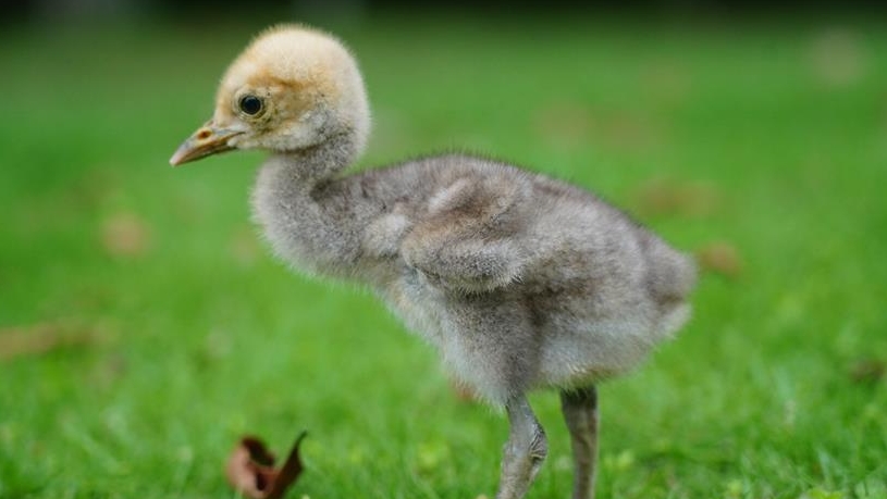 6月23日,一只蓑羽鶴寶寶在江西省南昌市高新區(qū)艾溪湖濕地公園破殼。