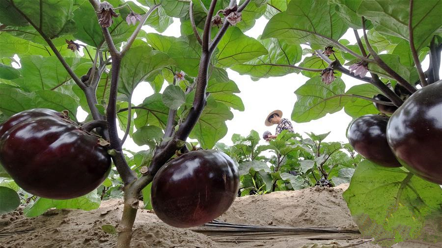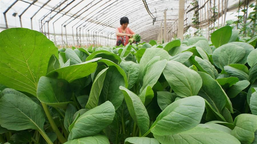 6月18日,唐山市豐南區(qū)黃各莊鎮(zhèn)雙坨村農(nóng)民在大棚內(nèi)收獲蔬菜。