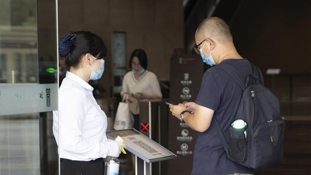 5月17日,在江西省博物館新館,參觀者入館前測(cè)量體溫。