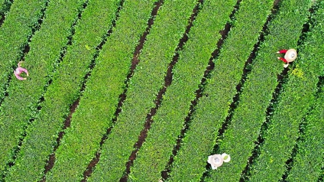 5月17日,村民在新院村茶葉基地采摘夏茶。