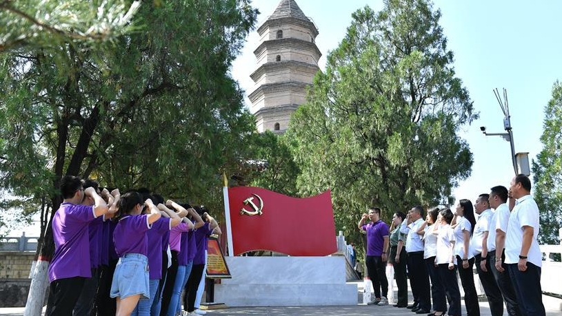 臨近“七一”,革命圣地延安的黨員干部紛紛來到紅色景區(qū),舉行主題黨課、現(xiàn)場(chǎng)教學(xué)、重溫入黨誓詞等活動(dòng)。