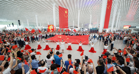 航站樓成"紅色海洋" 他們這樣慶祝新中國成立70周年