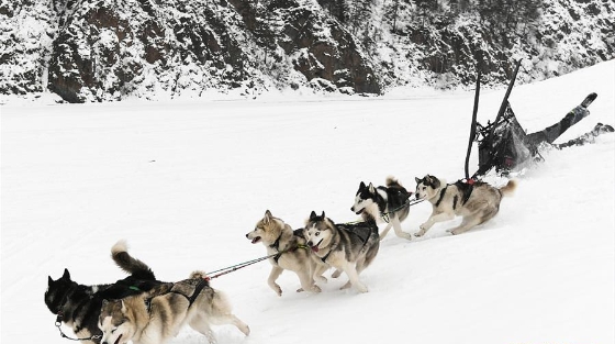 當?shù)貢r間3月4日,俄羅斯克拉斯諾亞爾斯克,當?shù)嘏e行10公里狗拉雪橇比賽。